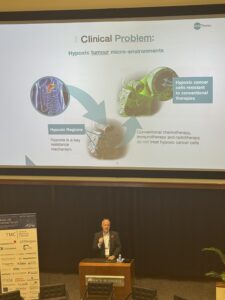 OncoTherics pitch highlighted the unmet clinical need to address hypoxia driven resistance across a range of difficult to treat cancers. Picture captured by Stephen Crawford, Principal at Endurance Builders, one of the event sponsors.